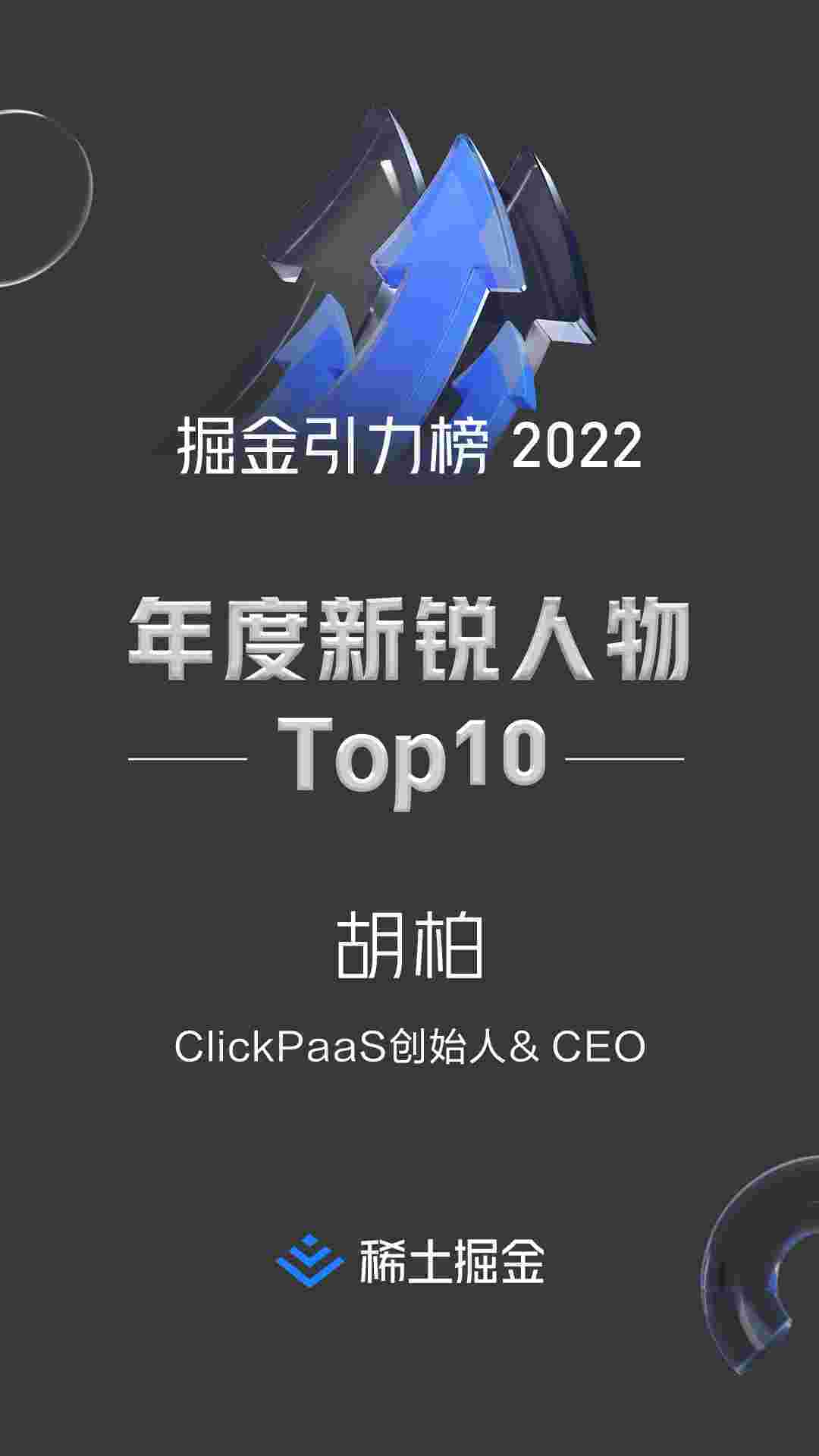 2022年1月6日,,,,,,,,,稀土掘金社区第一届「掘金未来大会」成功举办,,,,,会上发布了“2022 稀土掘金引力榜 年度新锐人物”榜单,,,,,,,,,,,,,,,,上海爱湃斯科技有限公司(简称NO钱包)创始人及CEO胡柏实力入选年度新锐人物TOP 10。。。。。。。。。。。